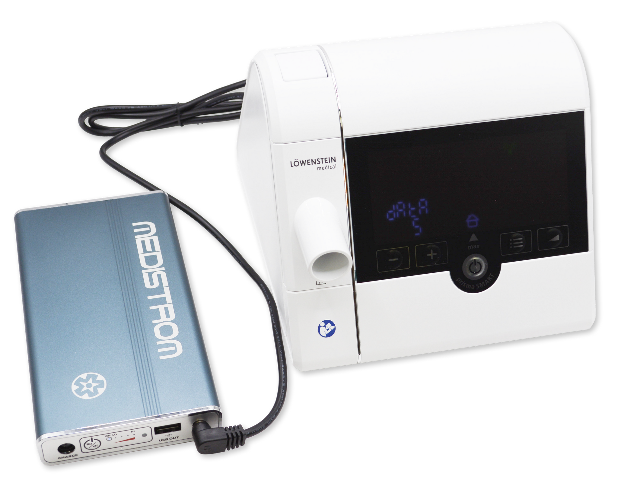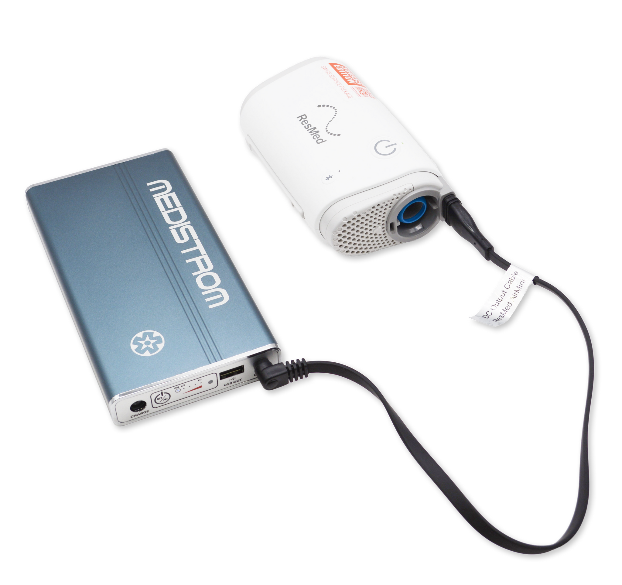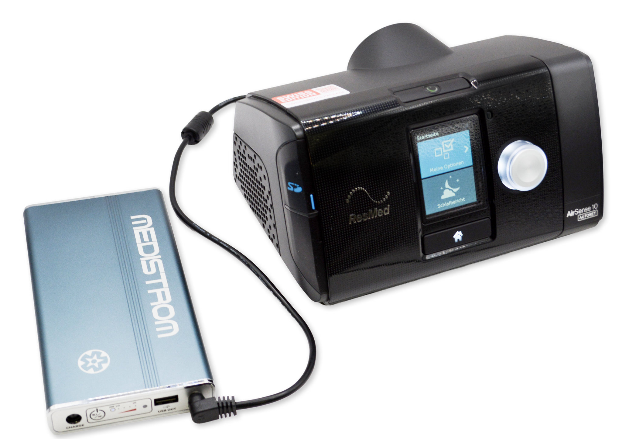 Die Batterie wird über das Netzteil des CPAP-Geräts aufgeladen. Für die DreamStation Go und das 3B Medical Luna wird ein separates Netzteil mitgeliefert.